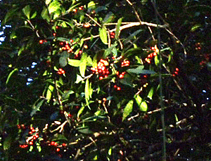 | ジャノヒゲに似た青い実 | 背の高い大きな木に びっしり実がついていた |