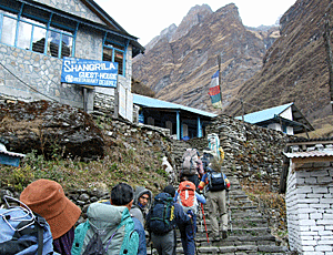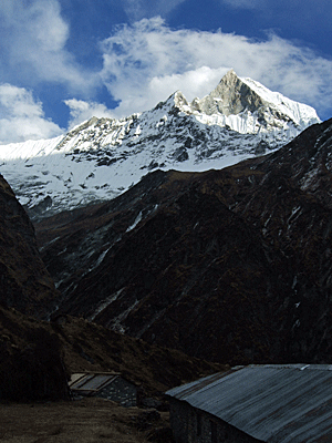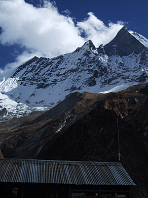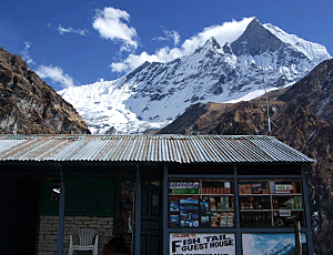 | 今日の宿はここ 今日の宿は 「フィッシュ・テイル・ゲストハウス」 「魚の尻尾の宿」 3720m地点に建っている 呼吸も平常 動悸も大丈夫 |