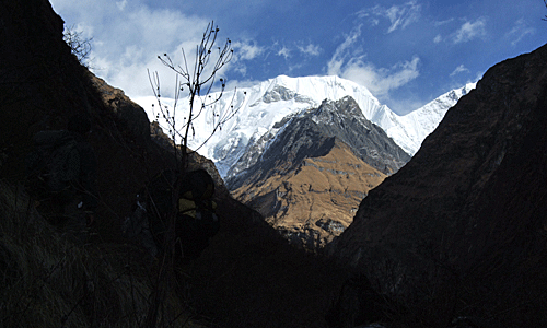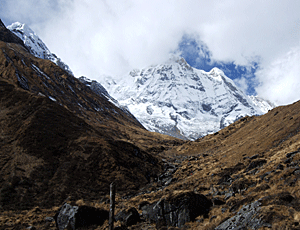 | アンナプルナ・サウスは 雲に隠れて何も見えなかった場所に アンアプルナ・サウスが 意外なほど大きく見えた!! |