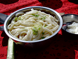 | ランチはうどん! こんなところでうどんが食べれるとは! 喉通りもよくつるつるっと 入ってしまった 白いご飯は 残ったつゆに入れて全部おなかへ |