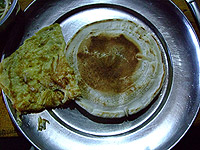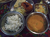 ごはん 味噌汁 コロッケ・千切りキャベル (大きいコロッケなのに 外はカリカリのパン粉・ 中は熱々のマッシュ・ポテトで とてもおいしかった) キャベツのドレッシング和え パパドウ |