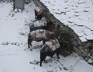 | サーダー(トレッキングの総責任者)1名 アシスタント・ガイド 1名 コック長 1名 キッチン・スタッフ 4名 ゾッキョ・ドライバー 1名 ゾッキョ 4頭 |