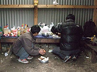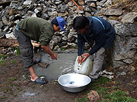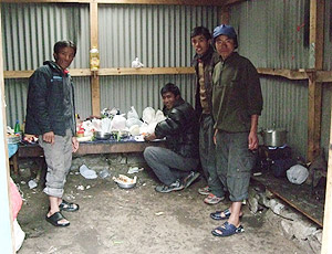 | *昨年、11月のアンナプルナ方面へのトレッキングで、大まかなことは分かっているので キッチン・スタッフへの信頼は大きかった。 2008年11月のアンナプルナ方面へのトレッキングのあれこれはこちらをクリック 今回のトレッキングの方が、高度が高いこともあって、水の確保や、お湯にする手間や時間などが 大変だったろうと推察できる。 マイナス気温の中でも、温かい洗面器のお湯や、手洗いのお湯、それに温かい食事への心配りには 本当に感謝している。 |