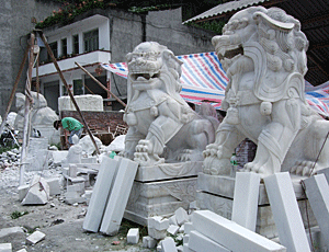 一方通行で待っている間に 大理石の加工場をチラッと見学 大きな大理石の原石を載せた トラックを何台も見た あんなに重くては 道路もへこむはず あちこちにくぼみができ 雨の後は、大きな水溜りになって いるのもうなづける |