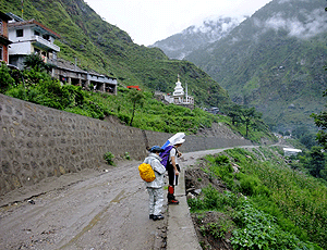 シャブルベンシの町外れ この広い道をどんどん北へ行くと、 チベットになる 今、中国側から立派な道路にするため シャベルカーなどの工事機械や人が どんどんネパール側に入ってきているとか 数年後は、 カトマンドゥまで快適な道路ができているかも おまけに時間も短縮されるらしい もしそうなったら、ぜひまたランタン谷を訪れたい |