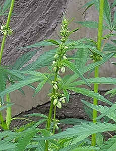 | アサ科 アサ属 アサ (マリファナになる) シャブルの町外れの排水溝の傍や トレッキングのルートや家の庭などの どこにでも普通に生えている この日は、ほとんど蕾だったが 下山してきたら、皆開花していた |