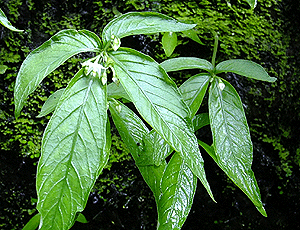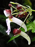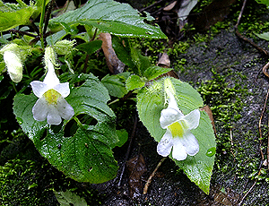 湿った岩の苔の上に咲いていた イワタバコの仲間 大群生を作る ![]() ↑ 花のアップ 地味な色合いだが私のお気に入り |