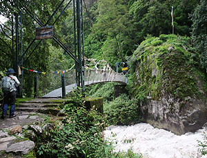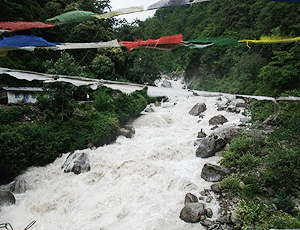 橋の下を流れる川の水は透明 注ぎ込むランタン・コーラの色は、 土色(というか泥色) |