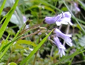 | 樹林の木陰・湿っぽい岩の苔の上に咲いていた キツネノマゴ科? 直径3cmほどの花 |