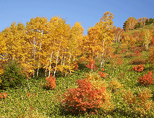 シラカバの黄葉が鮮やか〜 |