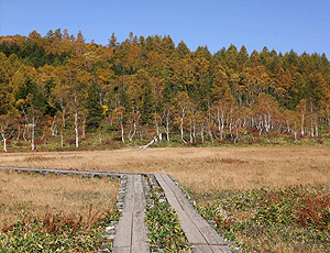 | 湿原の周りの黄葉もいいなあ〜 |