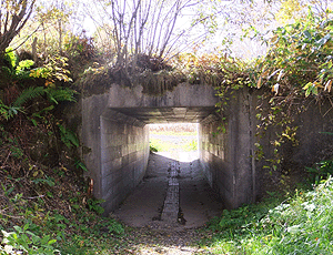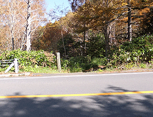 蓮池スキー場を横切って車道に出た トンネルをくぐって、また車道を横切ると・・・ |