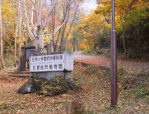 | 「信州大学自然教育園」の中を通過 時間のゆとりさえあればゆっくり観察したいところだが バスの時間が迫っているので、つい早足となる また車道を横切って、「下の小池」に向かう |