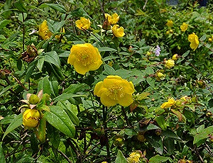 | オトトギリソウ科 麗江(標高約2400m)〜瀘沽湖(標高約2700m)間で キンシバイの仲間 日本では園芸種となって広まっている (中国原産らしいので、ここが本家本元?) どこにでも普通に見ることができた 背丈50cm程 花の直径3cm程 |