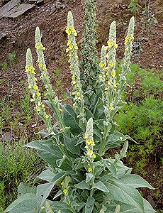 | ゴマノハグサ科 瀘沽湖(標高約2700m)〜麗江(標高約2400m)間で 道路際に生えていた日本の荒地でも良く見かけるビロードモウズイカの花 背丈一番高いもので2m程 花の直径1.5cm程 |