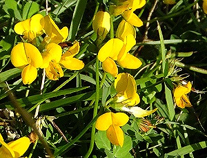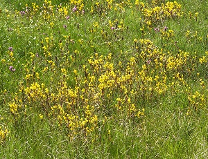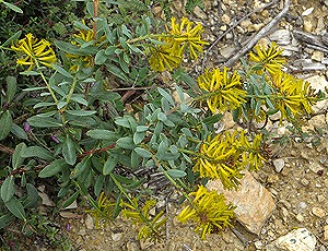 | 香格里拉のホテル近くを散策(標高約3300m) ミヤコグサそっくりな花 背丈8cm程 花の直径1cm程 |