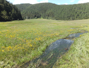 | 普達措国家公園で(標高約3800m) 広〜い湿地帯の中を流れる小川のまわりにいっぱい咲いていた |