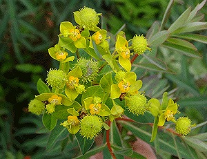 | トウダイグサ科 白水台で(標高約2400m) ナツトウダイに似た花 背丈50cm程 頭花の直径5〜6cm程 |