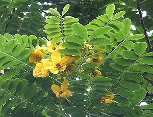 広州のホテルの近くの公園で(標高0m〜380m) 高木の花 葉は、ニセアカシアのよう |