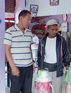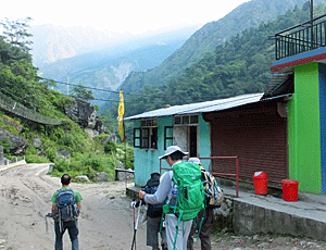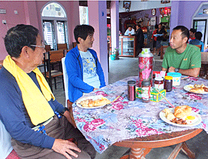 | 左 キッチンコックのテンバさん 日本で日本食の修行をしていた人 (次のツアーの為、途中で、帰るそうなので サブのコックさんがいる) 右 サブコックのナーレさん 昨年のランタン・ガンジャラ峠でも一緒だった |