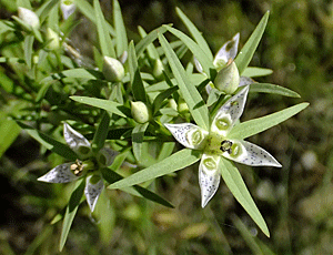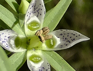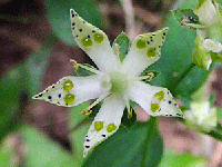 | アケボノソウの仲間:リンドウ科 日本のアケボノソウ↓より花は、小型 ![]() 緑色の蜜腺(ネパールの花は1ヶ所 日本の花は2ヶ所) 花びらの先に点々が散らばっていることは、同じ |