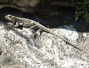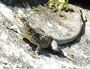 | トカゲの仲間 頭からしっぽの先までなら30cmはありそう 面構えは、かなりな強面 今日のコースのあちこちで見かけた |