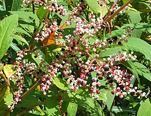 | タデ科の花(白い部分)と実(黒い粒の部分) |