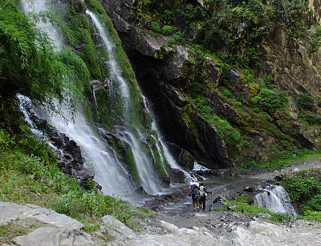 | 水量のある豪快に流れる大滝! これ以後、何度も大滝に出会った |