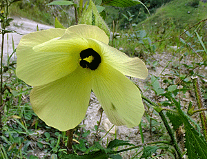 | オオバボンテンカ(大葉梵天花):アオイ科 昨年、ランタン谷でよく見かけた 日本では九州〜沖縄に分布しているとか |