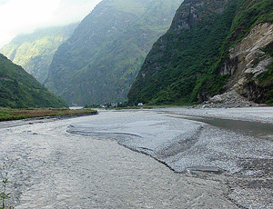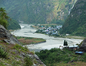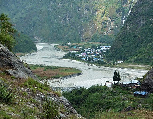 今日の宿は、「広い河原の所」と聞いていた あの集落がそうらしい |