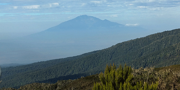 | 後ろを振り返ると、タンザニア第2の高峰メルー山(4566m) 最後の日のウォーキング・サハリの時にも見えた |