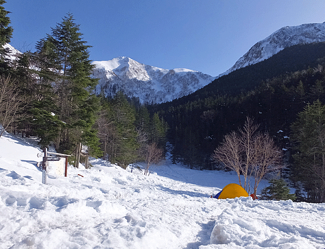 | ●コースタイム | 1日目 3/30 JR多治見駅 JR塩尻駅 JR茅野駅 美濃戸口 美濃戸山荘 行者小屋 赤岳鉱泉(泊) 2日目 3/31 赤岳鉱泉 赤岩の頭 硫黄岳山頂 赤岳鉱泉 堰堤広場 八ヶ岳山荘 美濃戸口 |