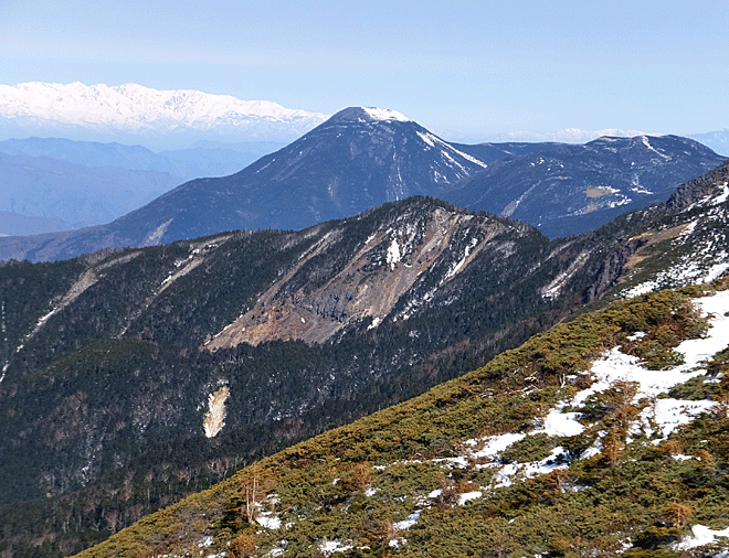 | 左手の突端へ進むと・・・中央アルプスが見えた | |