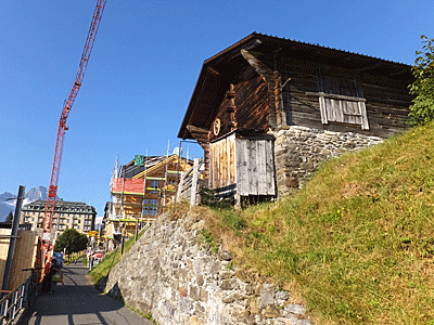 | 古い家の横に、建築中の建物 これもシャレーかな |