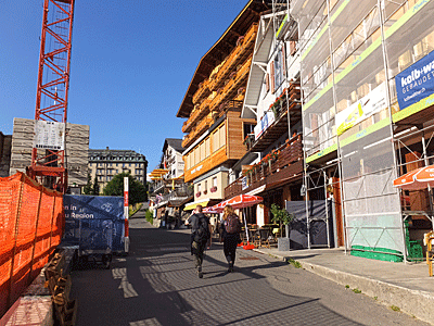| 駅を通り過ぎると、こちらも建築ラッシュ そういえば、ミューレンの町を歩く暇が無かった・・・ マラソンウーマンは、機会を見つけて走っていたとか いい心がけ! |