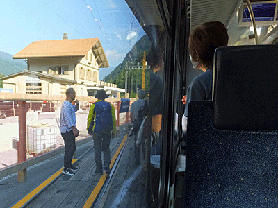 | 途中のツヴァイリュッチネン駅(読み方の難しい駅)で 男性1名下車(彼はグリンデルワルト駅へ) |