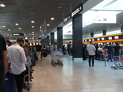 | チューリッヒ空港着 12:14 すご~い混雑! 延々と並んでやっとチェックイン |