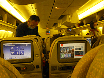 | 来るときに比べると、座席はかなり余裕があった だが、チューリッヒ~ドバイ間に比べると 機内設備が、旧型の感じ |