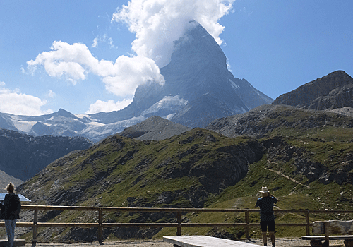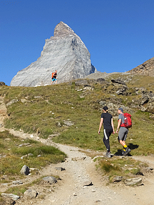 | 休憩しているハイカーと マッターホルン |