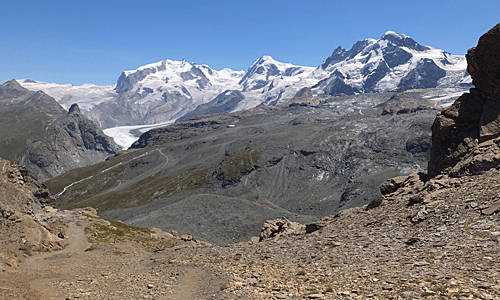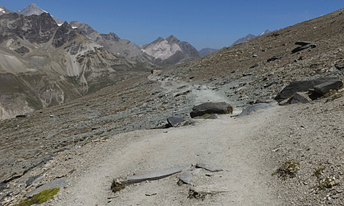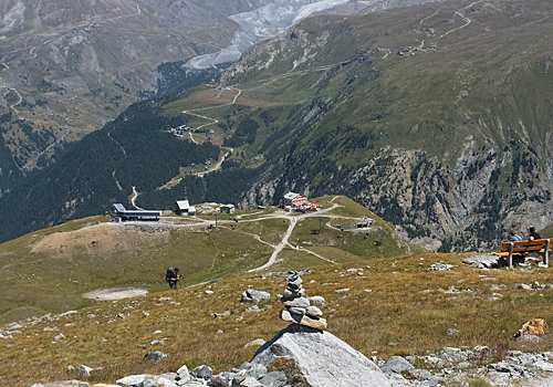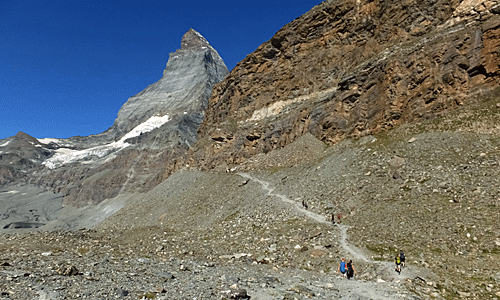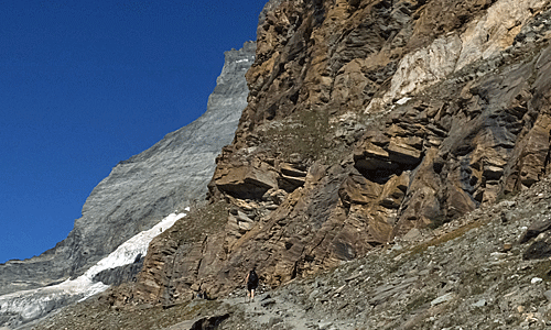 | マッターホルンを振り返る もう、ヒュッテは見えなくなった |