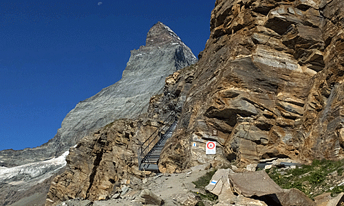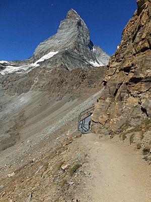 | マッターホルンは、手前の岩壁に遮られ 頭だけしか見えなくなった |