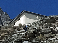 | 崩れてきそうな岩の積み重なった斜面を ジグザグに登っていくと ヒュッテが大きく見えるようになった 11:01 |