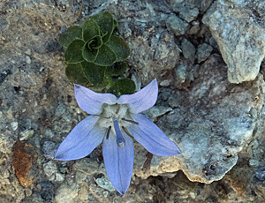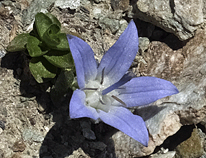 | キキョウ科の花 背丈2~3cmで、 地面から花が咲いているかのように見える |