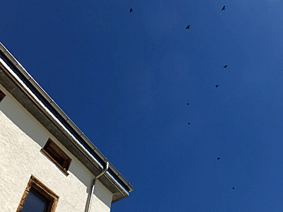 | 鳥がたくさん空を舞っていた |