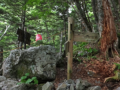 | 大樺沢分岐 6:57 以前は、直進できたのだが・・・ |