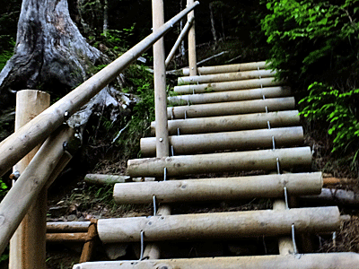 | あれ?幾つ目だっけ? 次から次へと現れる梯子階段 段差が大きいので、「よいしょ」の掛け声が必須 |