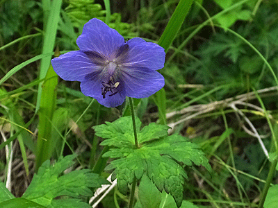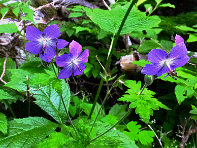 | タカネグンナイフウロ:フウロソウ科 明るい沢に出たら、途端に花の数が増えた それも色鮮やか~ |
