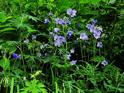 | ミヤマハナシノブ:ハナシノブ科 やあ~、久しぶりに会えたね~ 大樺沢ならわんさか咲いているのにね! この花、白根御池までに咲いていたのは、 ここだけのこれっきりだった |