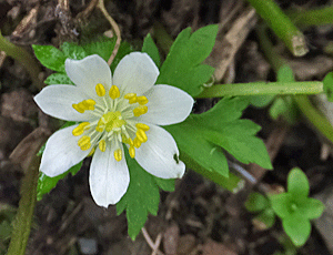 | サンリンソウ:キンポウゲ科 ニリンソウに似ているが、小型 そういえば、ここにはサンリンソウが咲いていたっけ…と 思い出した |