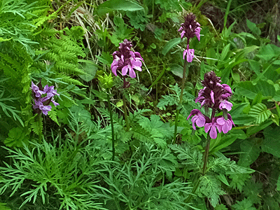 | ヨツバシオガマ:ハマウツボ科 隣にハクサンチドリも |
